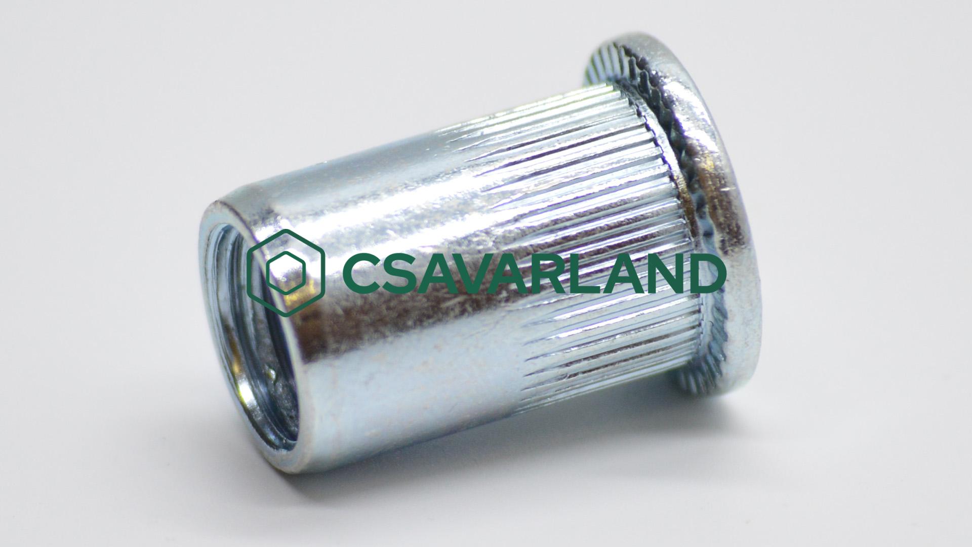 Szegecsanya, peremes, kerek, rovátkolt, nyitott, acél, M6x15/9 (0.5-3.0)